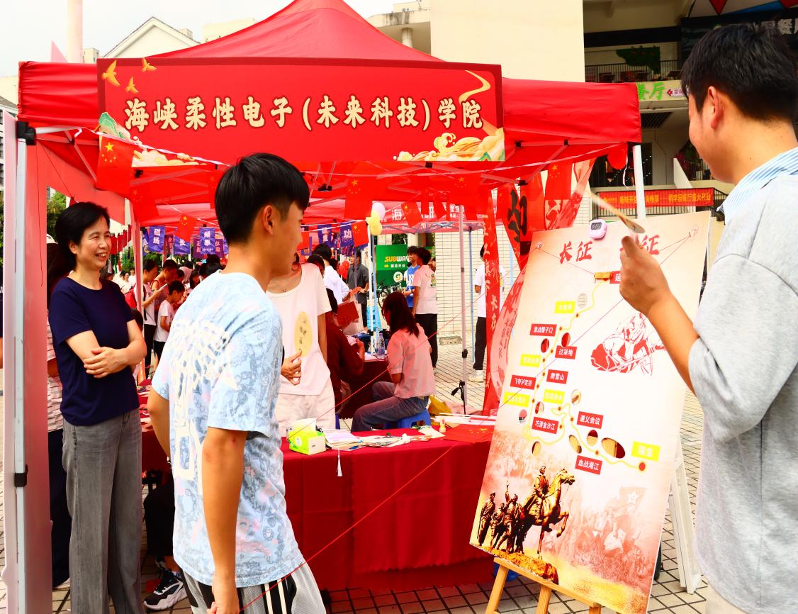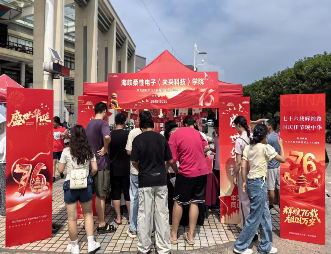 101日上午,我院在桂苑主干道精心组织开展国庆游园活动。活动以红色文化为内核,设计多元趣味游戏,场地布置充满节日氛围,吸引了全校广大学生参与,现场气氛热烈。活动期间,校长郑家建、校党委副书记吴剑锋,以及我院党委书记章琳、党委副书记吴志锋等领导莅临活动现场,与同学们亲切互动,共同感受节日氛围。