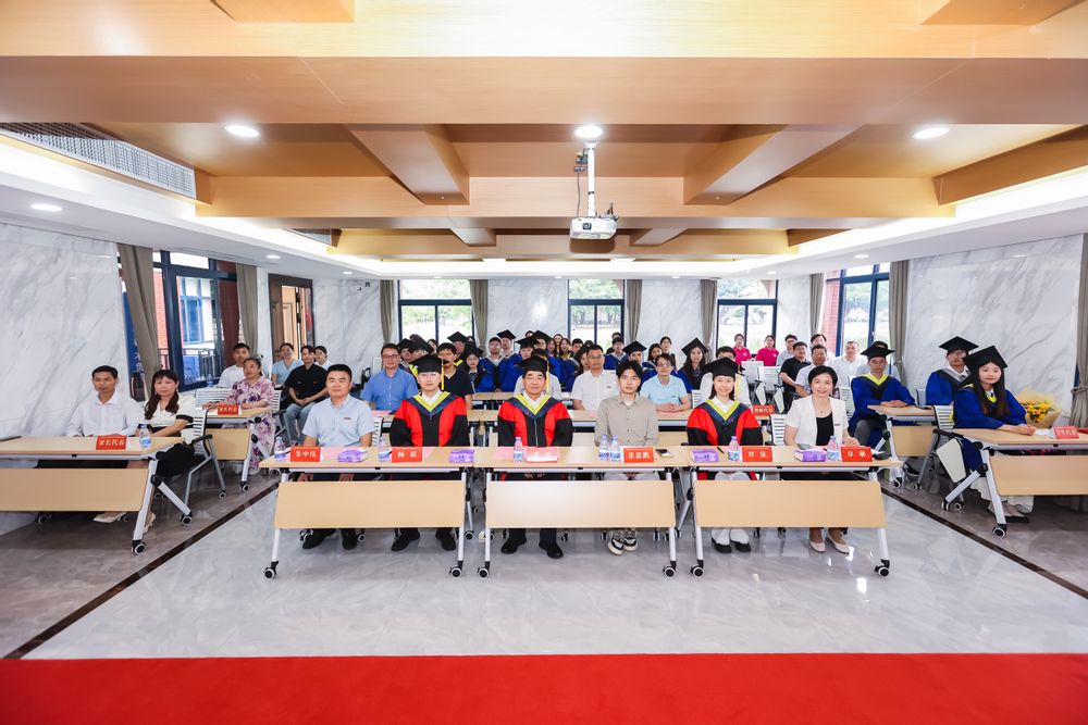 校外导师代表,福建泉舟时代科技有限公司董事长张思鹏在发言中,鼓励毕业生以柔性智慧驾驭刚性世界,用科技微光温暖人间角落,将母校的温暖时光化为精神动力拼搏向前。随后,导师代表刘洋教授、毕业生代表王若妍分别发言。