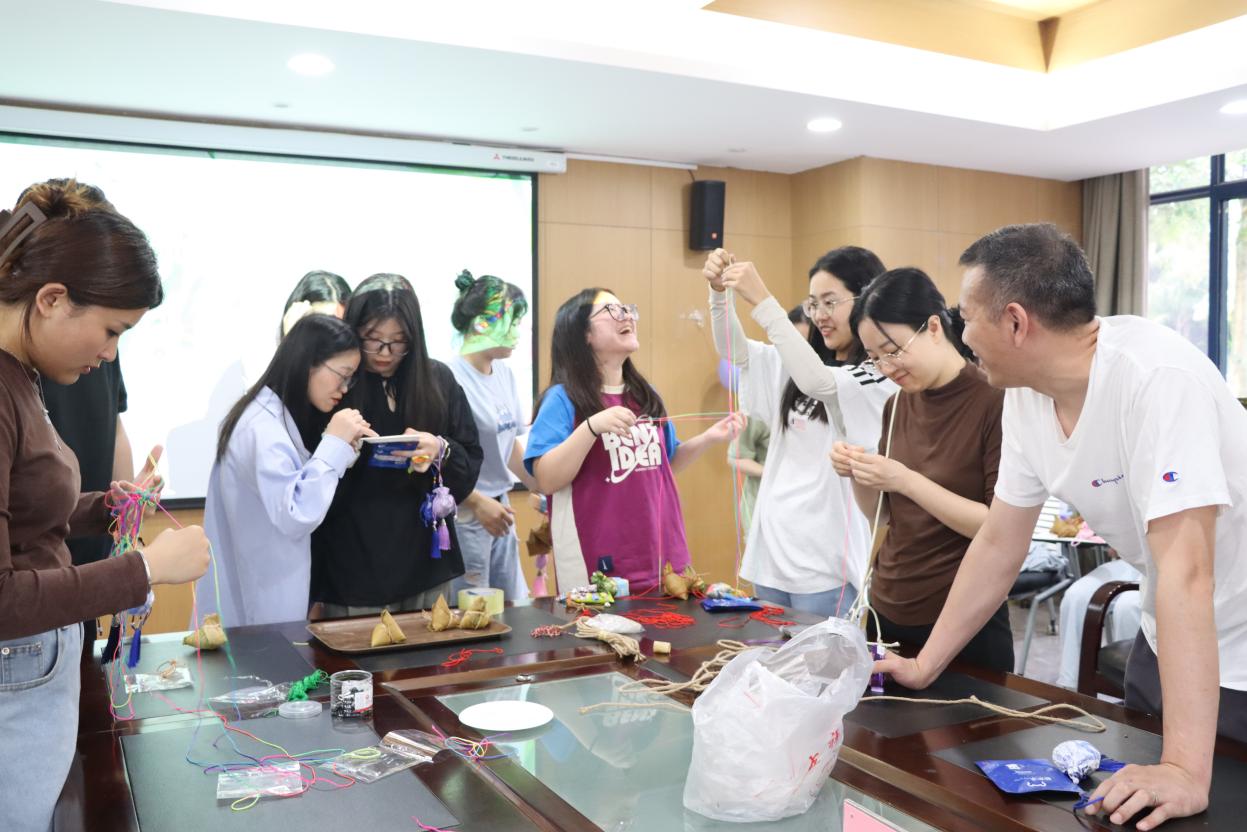 为弘扬中华传统文化,丰富师生在校生活,6月7日,我院组织开展端午节日活动,学院师生积极参加。本次活动分为制作和游戏两个部分,活动伊始,学院师生纷纷动手制作香囊和彩绳,并在香囊中放入艾草、薄荷等中药材,进一步了解节日习俗的意义。此外,活动现场还设置了投壶和掷飞镖等传统游戏,师生们积极参与,提高了活动的趣味性。本次活动现场布置充满节日氛围,学院师生在动手制作、参与游戏中感受到传统文化的魅力。