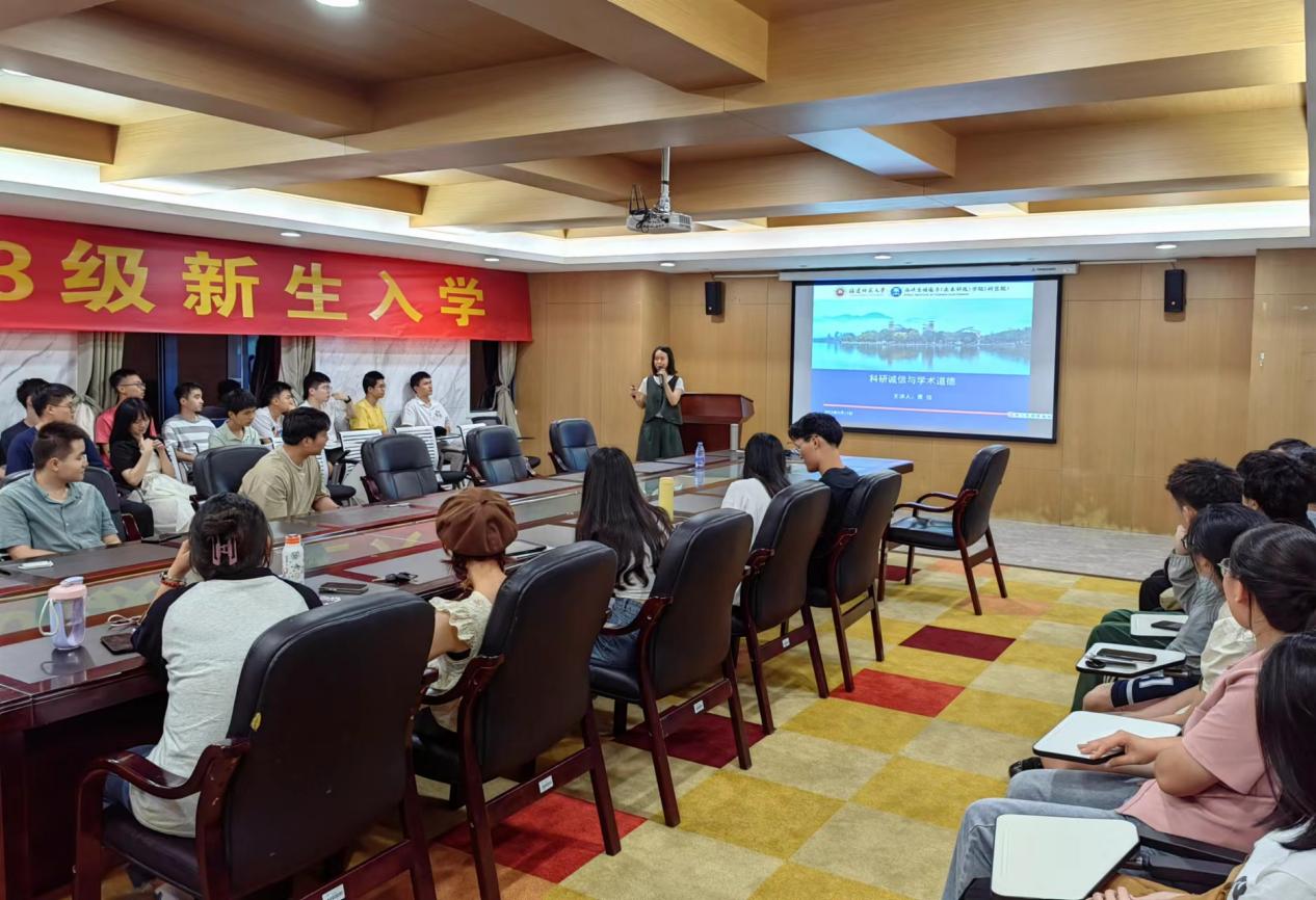 国家级人才、博士生导师覃弦教授为新生讲授“科研诚信与学术道德”主题讲座,详细阐释了科研诚信的概念,通过案例讲解科研不当、学术不端的定义及造成的严重后果。她强调,学生应学会独立思考,秉承科学家精神,保持正直和诚实的态度,努力提升专业知识储备。