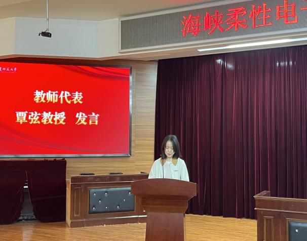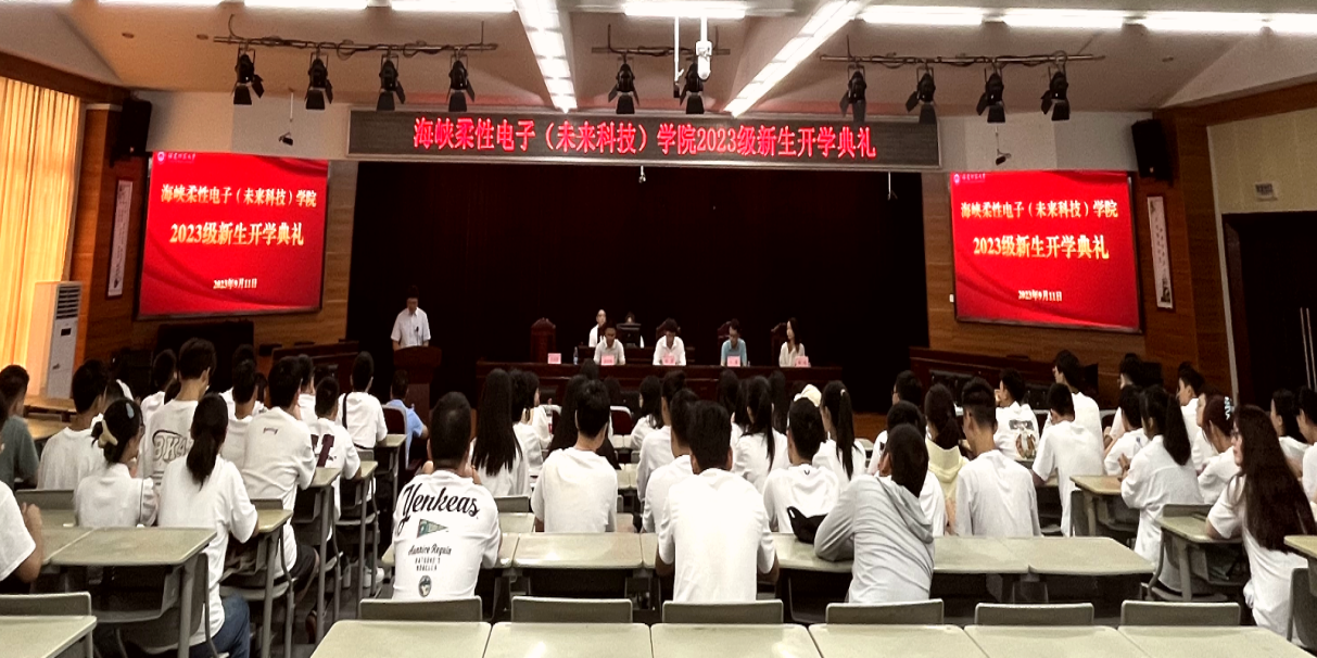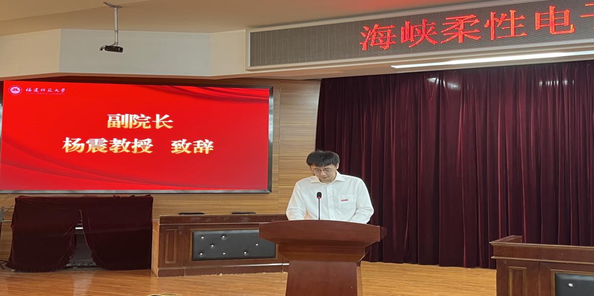 典礼在庄严的国歌声中拉开帷幕。副院长杨震教授代表全院师生员工热烈欢迎2023级全体新同学加入福建师范大学海峡柔性电子(未来科技)学院,并在致辞中提出三点殷切期望:一要心系“科技强国”之责,胸怀“国之大者”,弘扬科学家精神,心无旁骛,勇于探索,追求卓越,争做堪当民族复兴重任的时代新人;二要坚守做事的恒心和毅力,苦干实干,着眼世界学术前沿,勇攀科技高峰;三要守正创新,善于学习新知识、新技术、新理论,把个人理想追求融入党和国家事业之中。