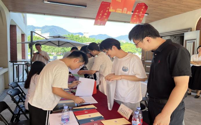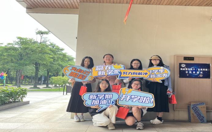 学院将迎新点设置在星雨湖畔的办公楼,在简化报到流程的同时,并设置配有茶点和播放学校宣传影片的休息区。学院为每位新生送上入学礼品袋,迎新点设置有签名墙、拍摄背景墙等互动环节,学院领导、老师、老生与新生亲切交流,让新生感受到学院的热情和关怀。