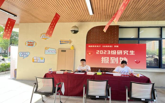 迎新现场,校领导与2023级新生进行了亲切交流,代表学校热烈欢迎他们加入福建师大大家庭、加入柔性电子(未来科技)学院(研究院),勉励广大研究生新生心怀科技梦想,踔厉奋发、勇毅笃行。同时,校领导对学院特色的迎新工作和温馨的迎新点布置予以肯定。
